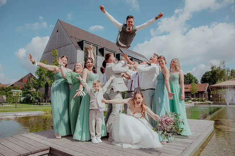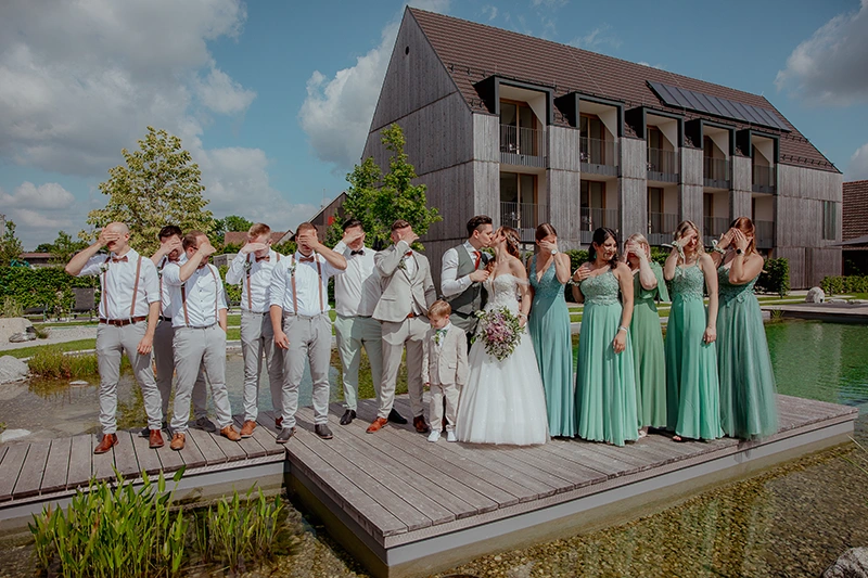 Die Möglichkeit einer freien Trauung auf dem Steg im Mittelpunkt des Naturpools verleiht dem Tag eine romantische Note, die meine Hochzeitsreportagen mit einer ganz besonderen Magie füllt. Die Kulisse ist nicht nur malerisch, sondern auch ein perfekter Rahmen für Hochzeitsfotos, die die Liebe und Freude dieses Tages auf einzigartige Weise einfangen.