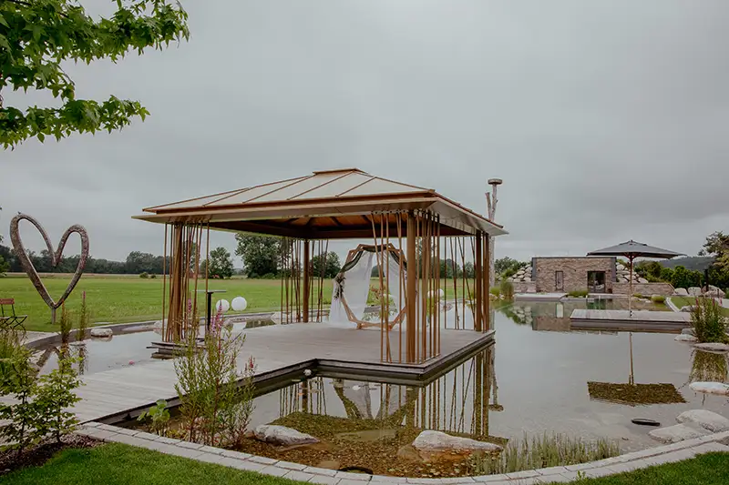 "Lenderstuben in Balzhausen: Eine bezaubernde Hochzeitslocation mit Hotel, Stadel, Naturpool und Freier Trauung!"
